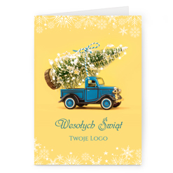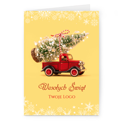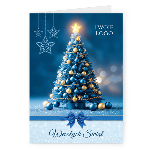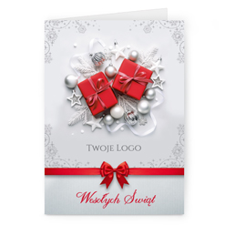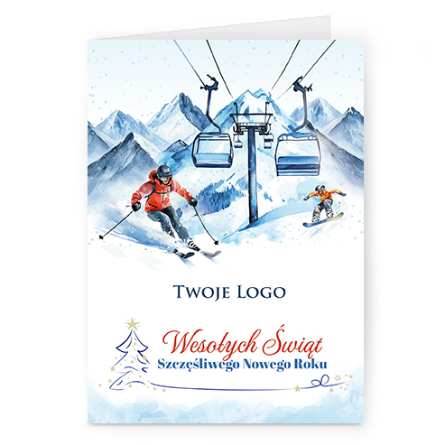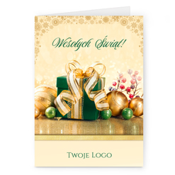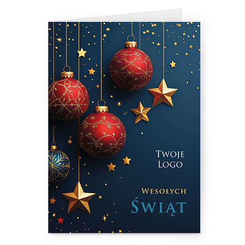 Świąteczne kartki pionowe na papierze kredowym z Twoim logo i życzeniami.