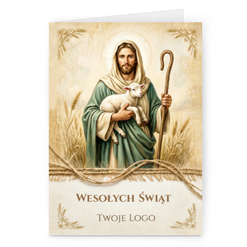 Świąteczne kartki pionowe na papierze kredowym z Twoim logo i życzeniami.