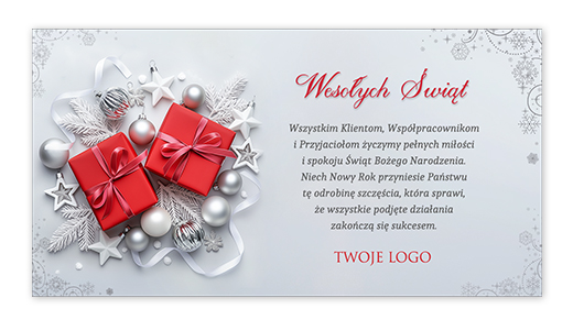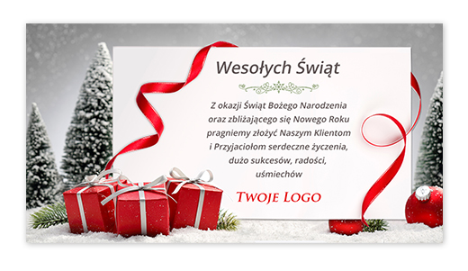 - naniesienie loga oraz przesłanej przez Państwa treści życzeń do wybranego projektu e-kartki
