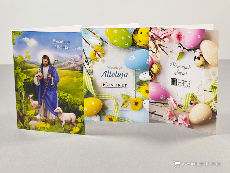 U nas znajdziesz ogromny wybór projektów w różnej kolorystyce. Daje Ci to możliwość wpasowania logo, tak by kartka wyglądała jak zaprojektowana indywidualnie dla Ciebie.