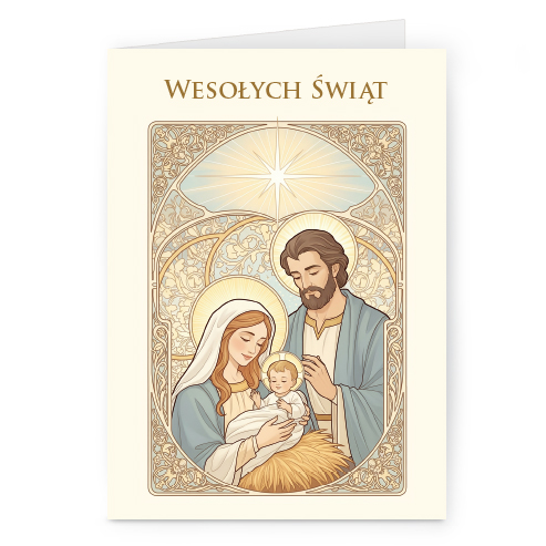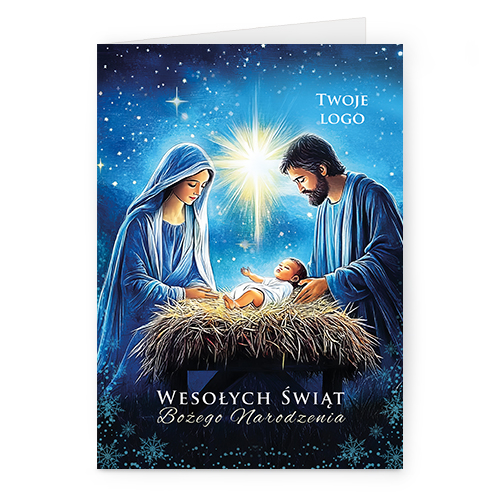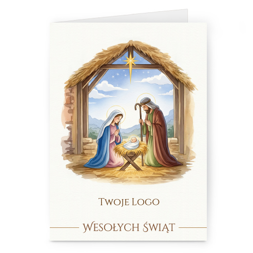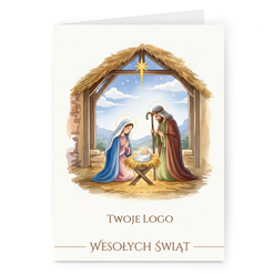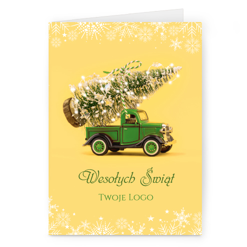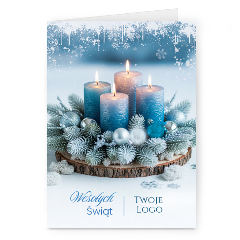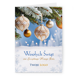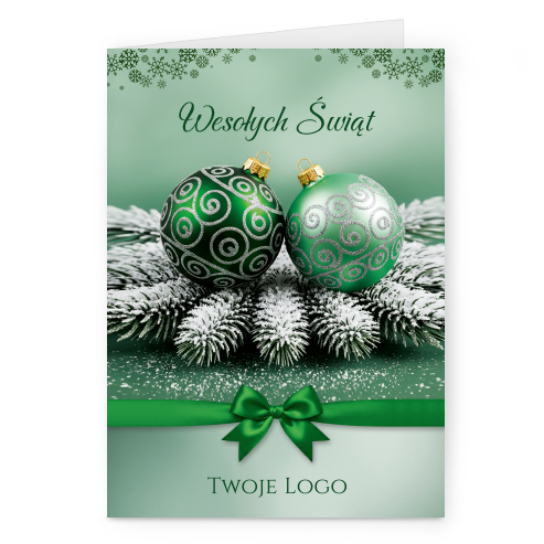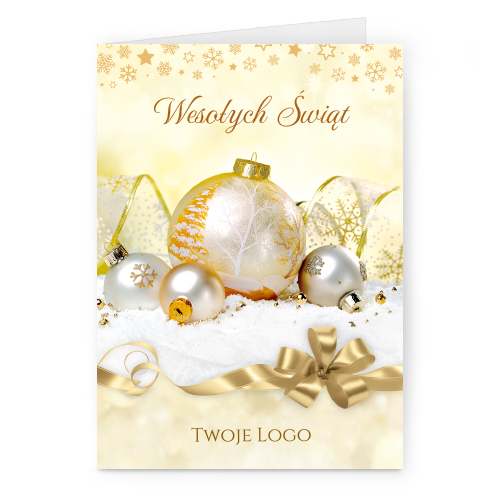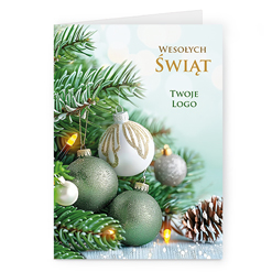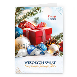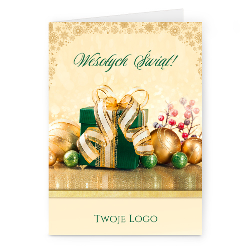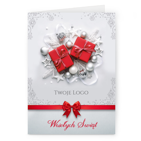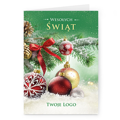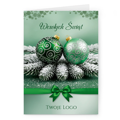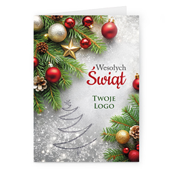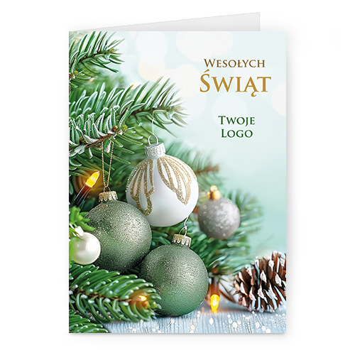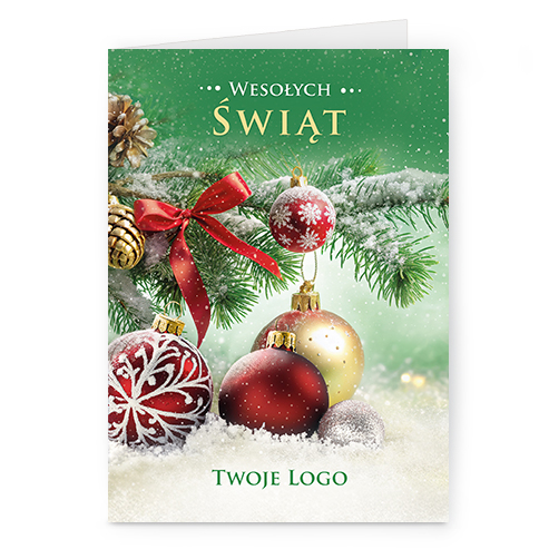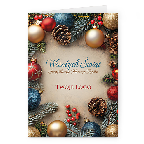 Świąteczne kartki pionowe na papierze kredowym z Twoim logo i życzeniami.
