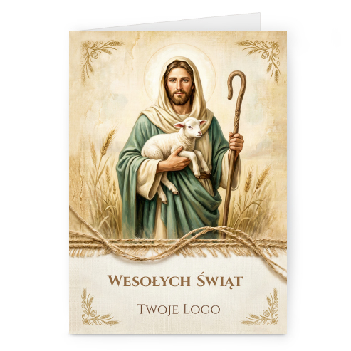 Świąteczne kartki pionowe na papierze kredowym z Twoim logo i życzeniami.