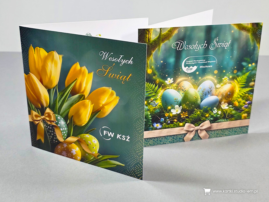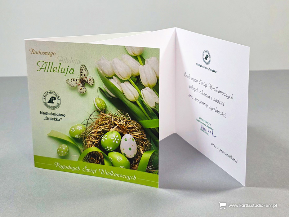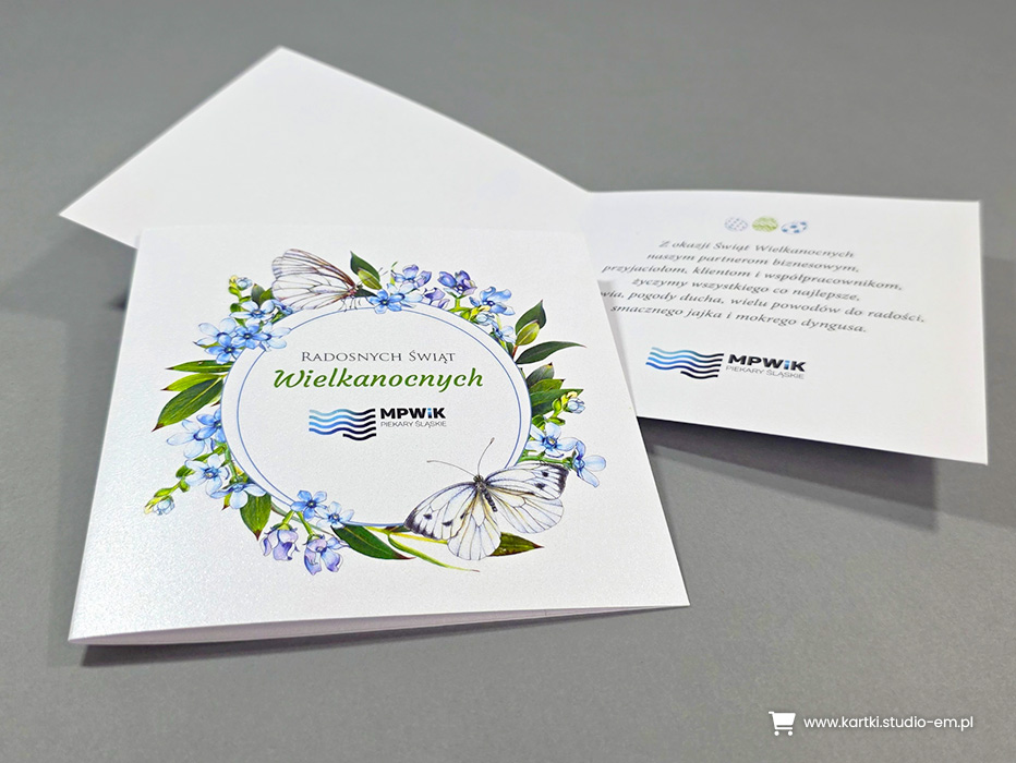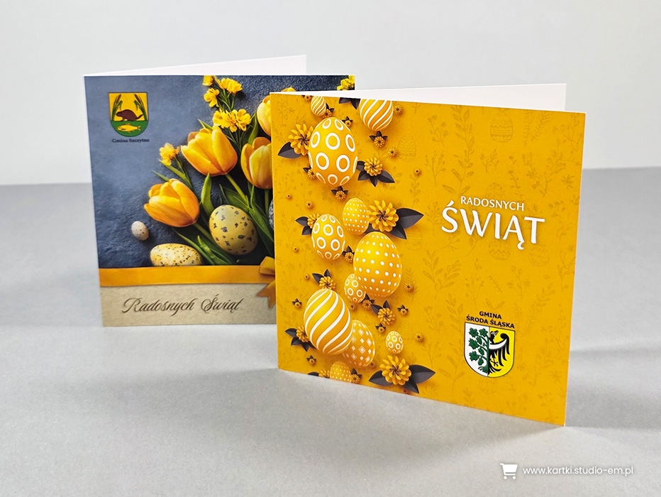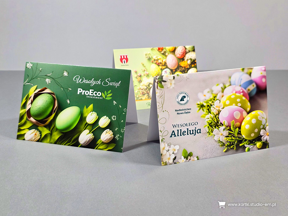 U nas znajdziesz ogromny wybór projektów w różnej kolorystyce. Daje Ci to możliwość wpasowania logo, tak by kartka wyglądała jak zaprojektowana indywidualnie dla Ciebie.